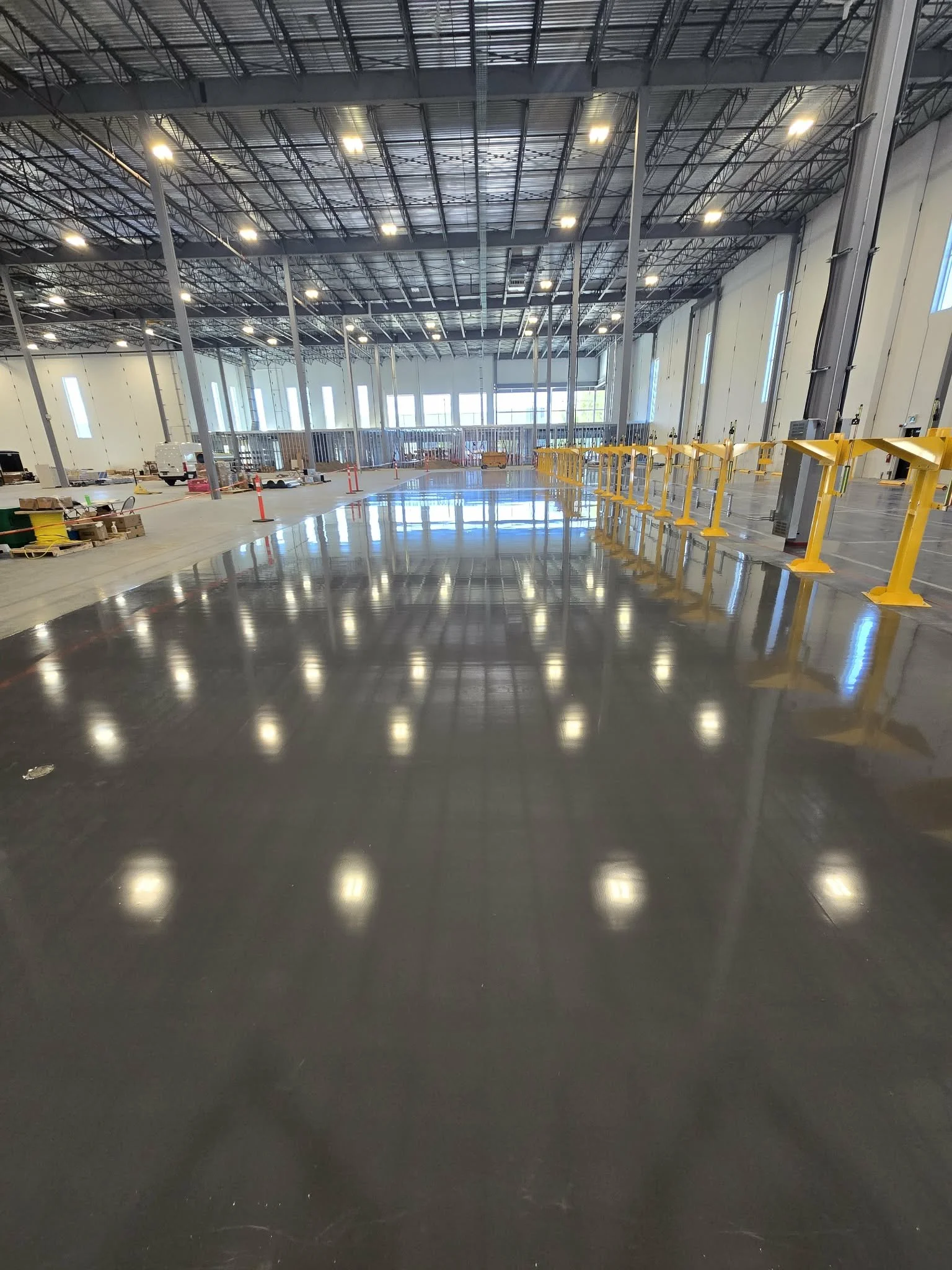 Our multi-step mechanical polishing process transforms standard concrete into a high-density, light-reflective surface. By closing the pores of the concrete, we create a dust-proof floor that is exceptionally easy to maintain and built to withstand high-volume traffic.